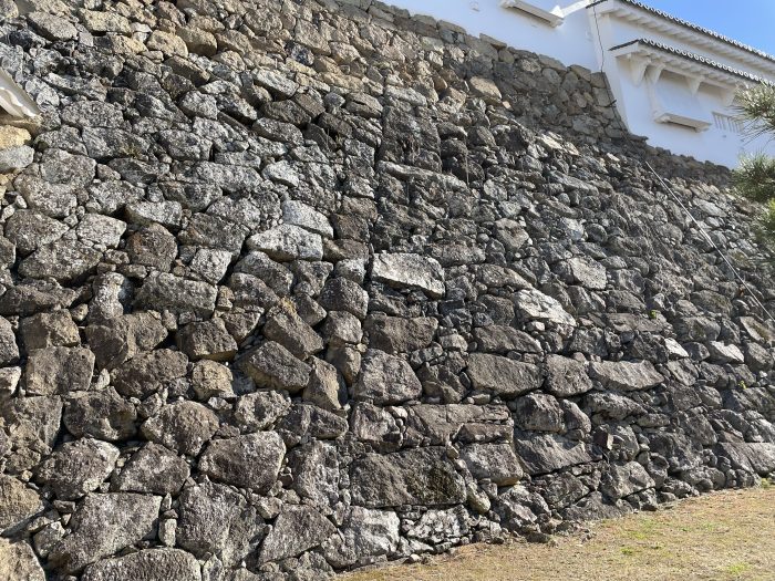 るの門の近くにある石垣にはキレイに継ぎ目がはいっていました。この線の右側は羽柴秀吉の時に、左側は池田輝正によって築かれたんだそうです。