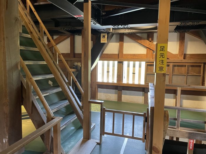 こちらは2階。現存天守だけあって、階段はかなり急で、当時の構造がそのまま残されているのを感じます。安全面への配慮から、鉄筋でしっかりと補強もされていました。