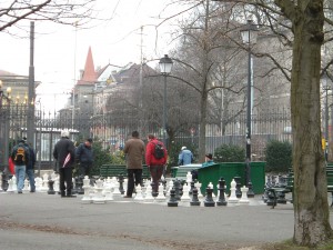 行く途中の公園で、チェスをやっている人達がいた。